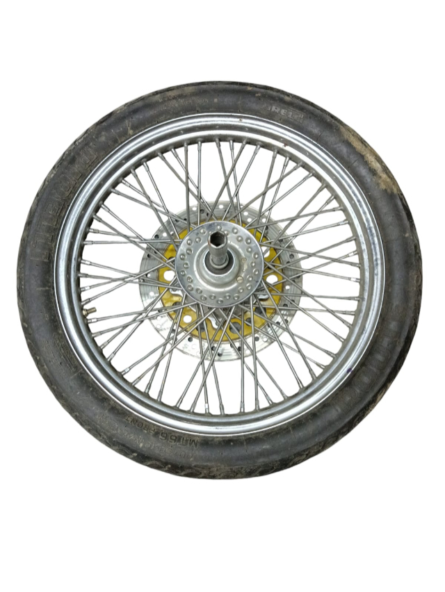 Roda dianteira completa. Cromada, rolamentos, emgrenage velocimentro, disco de freio, pneu em perfeito estado